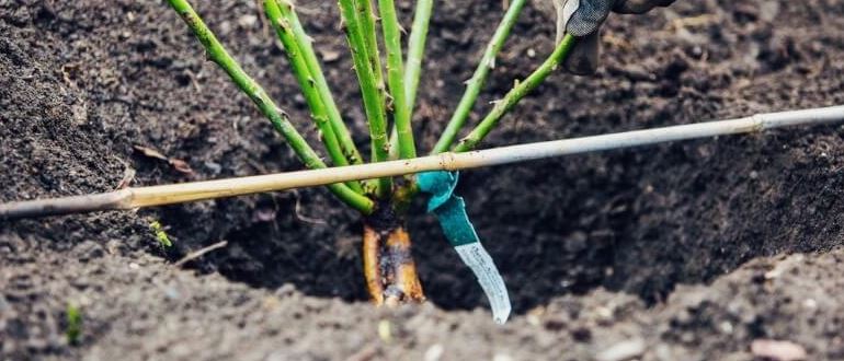 - Для привитых кустов (на подвое) обратите внимание на «перевязку» — точка прививки (бугорок). В холодных регионах её обычно заглубляют на 2–5 см, в тёплых — оставляют на уровне почвы или чуть выше (0–2 см).